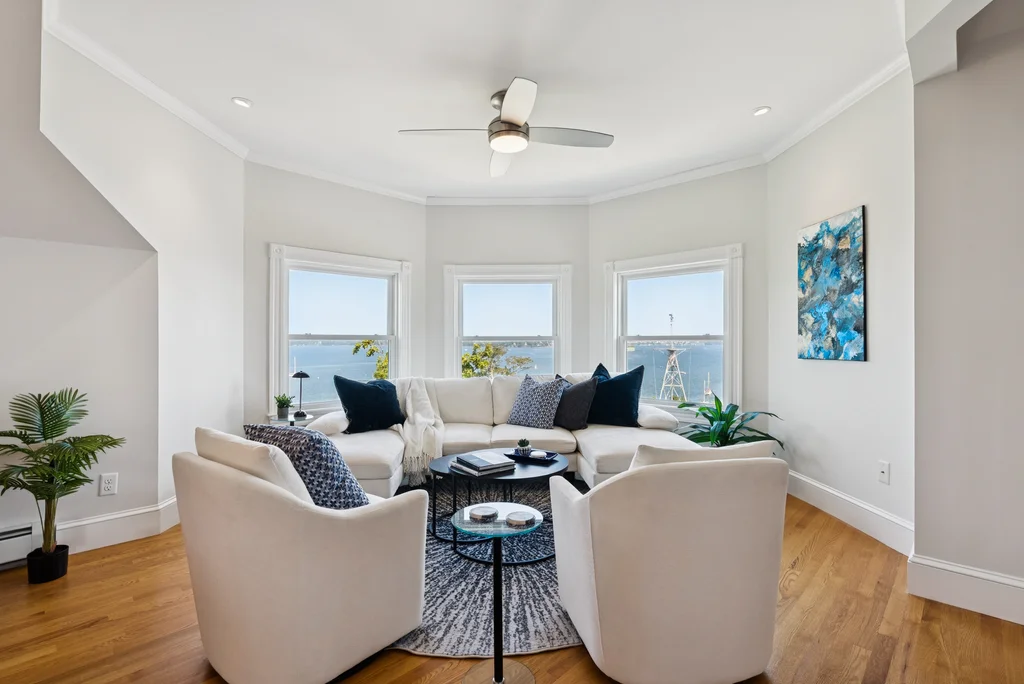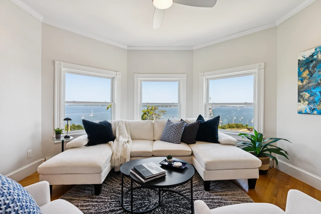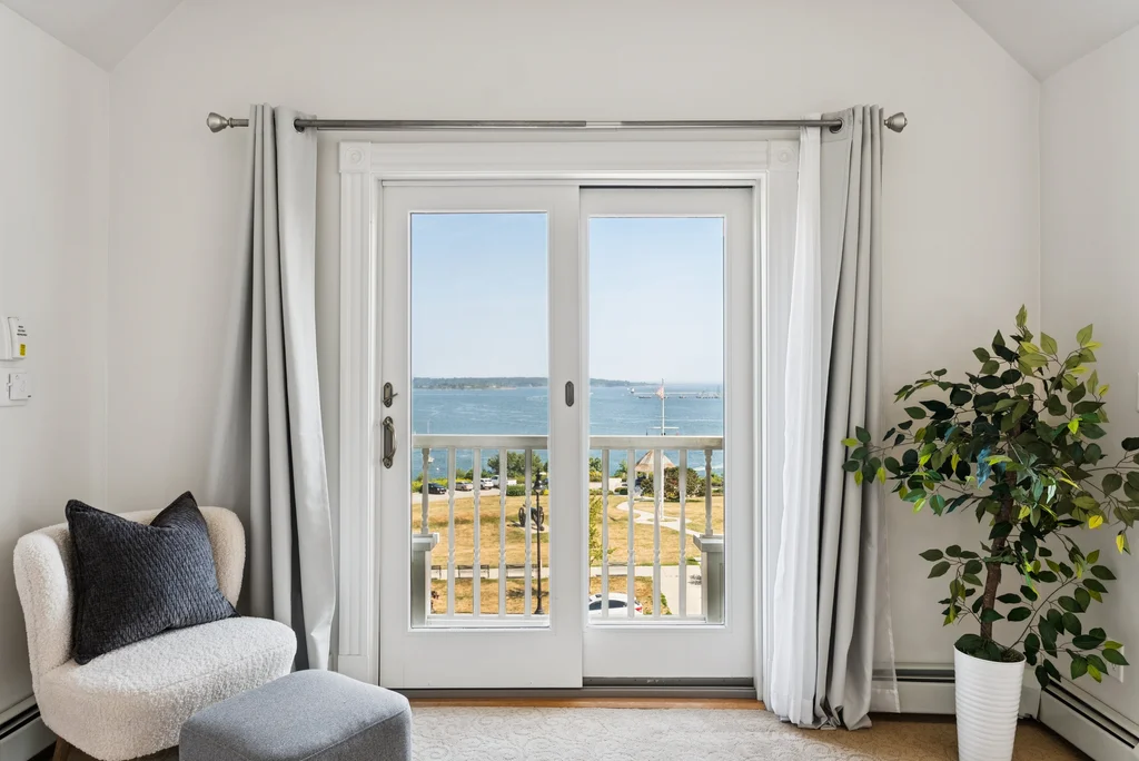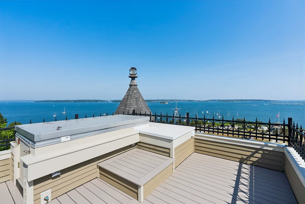 The crown jewel is your exclusive use of the Widow’s Walk rooftop deck, a rare vantage point offering sweeping, protected, unobstructed views over Casco Bay and Portland Harbor. From here, you can see Fort Gorges, the Casco Bay Islands, and three lighthouses, including the world-famous Portland Head Light. Watch sailboats, lobster boats, ferries, and cruise ships as they move gracefully across the bay.