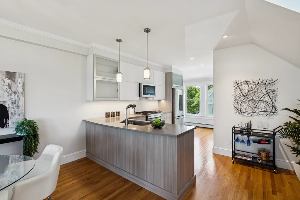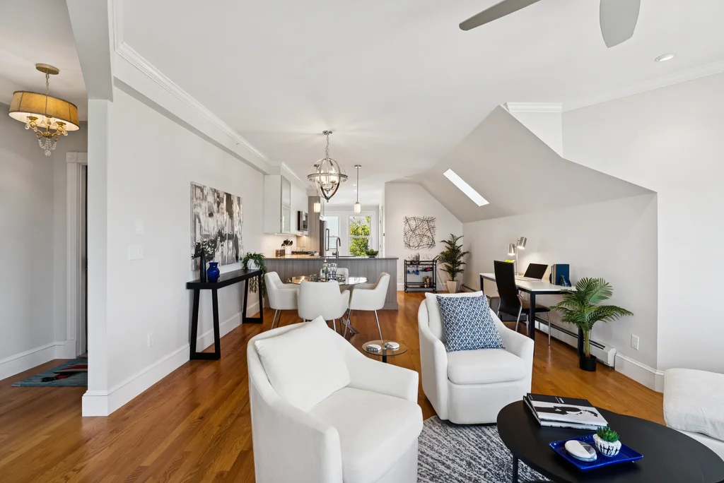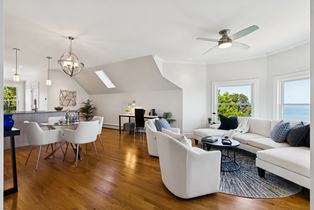 Perched atop one of Portland’s most iconic addresses, The Fort Gorges Suite at 84 Eastern Promenade offers timeless Victorian charm paired with sleek modern style. This beautifully updated top floor, two bedroom, two full bath condominium is located in a historic Queen Anne Victorian built in 1901 with only four exclusive units, a true masterpiece of architecture in the city’s most coveted location.